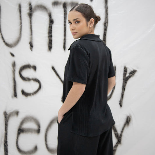 Blusa plisada manga corta