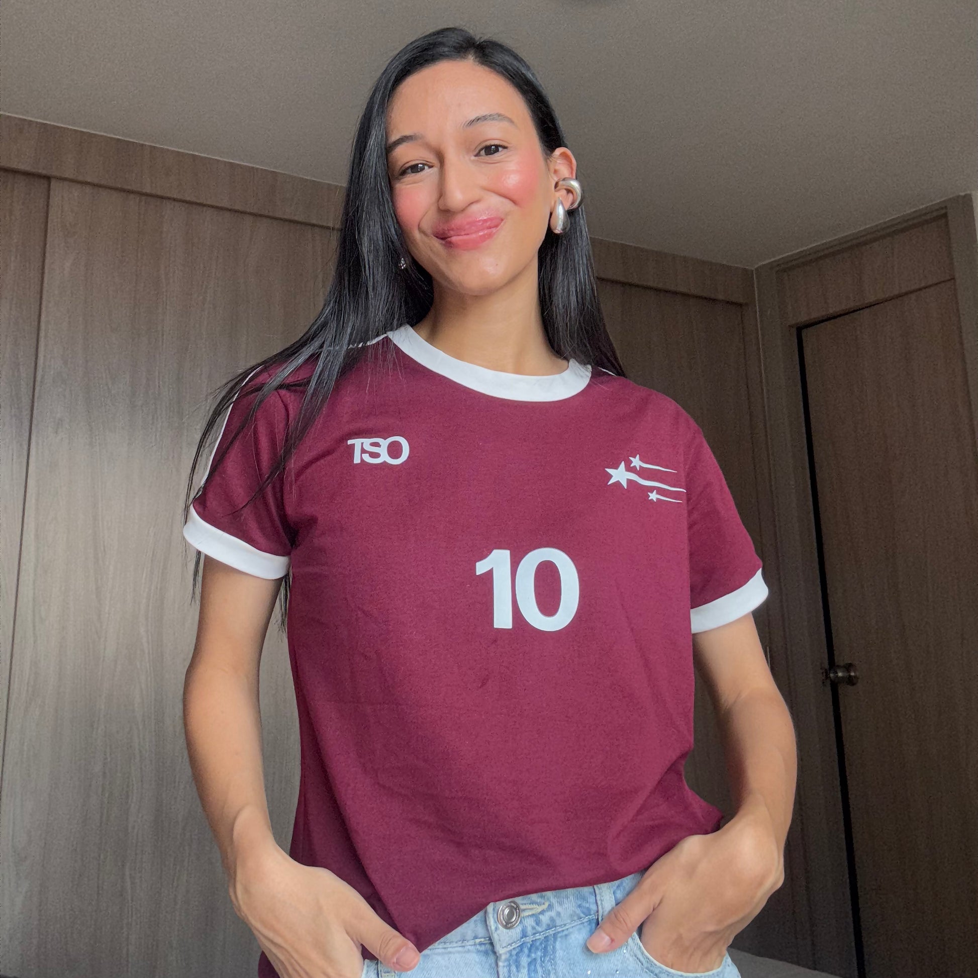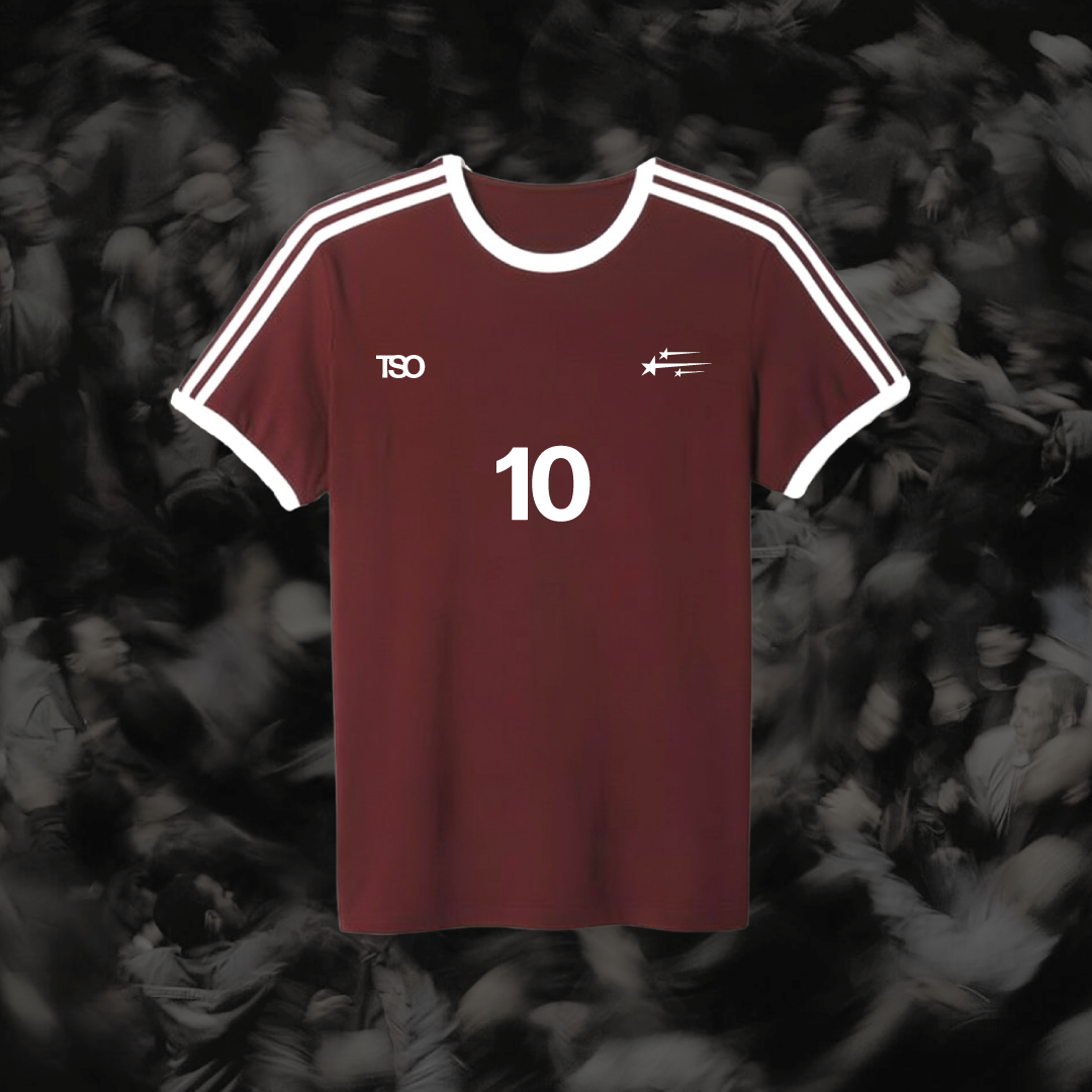 es una tshirt futbolera retro con guiños a dua lipa, el fit es regular, puedes usar la talla que normalmente usas o una talla más si quieres que te quede más oversized
